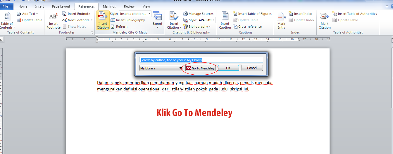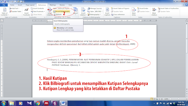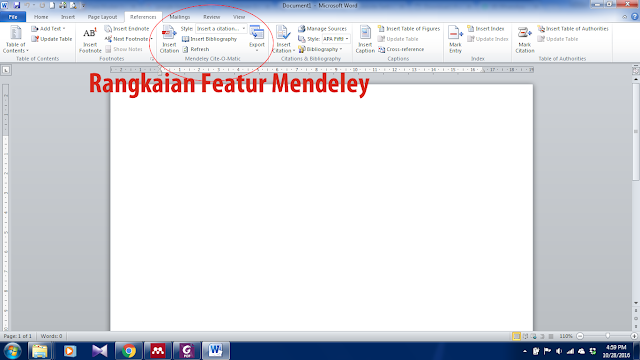 Setelah itu buka MS Word dan lihat pada Tab Reference, seperti pada gambar berikut ini