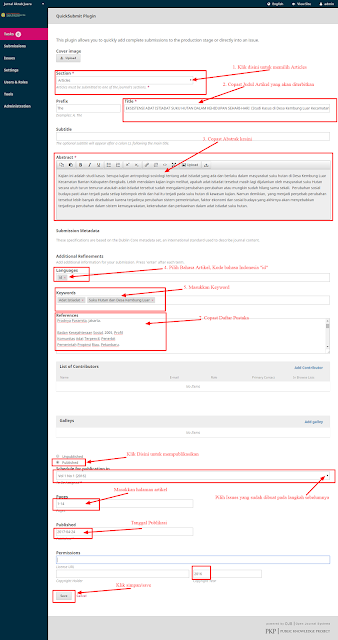 Kali ini saya akan menyampaikan step by step mengupload artikel jurnal yang telah terbit sebelumnya dengan menggunakan Plugin Quick Submit yang telah disediakan oleh OJS versi 3 dan versi sebelumnya.