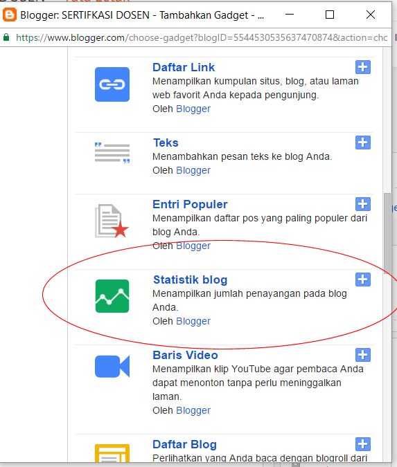 2. Tambahkan Gadget kemudian pilih widget Statistik Blog