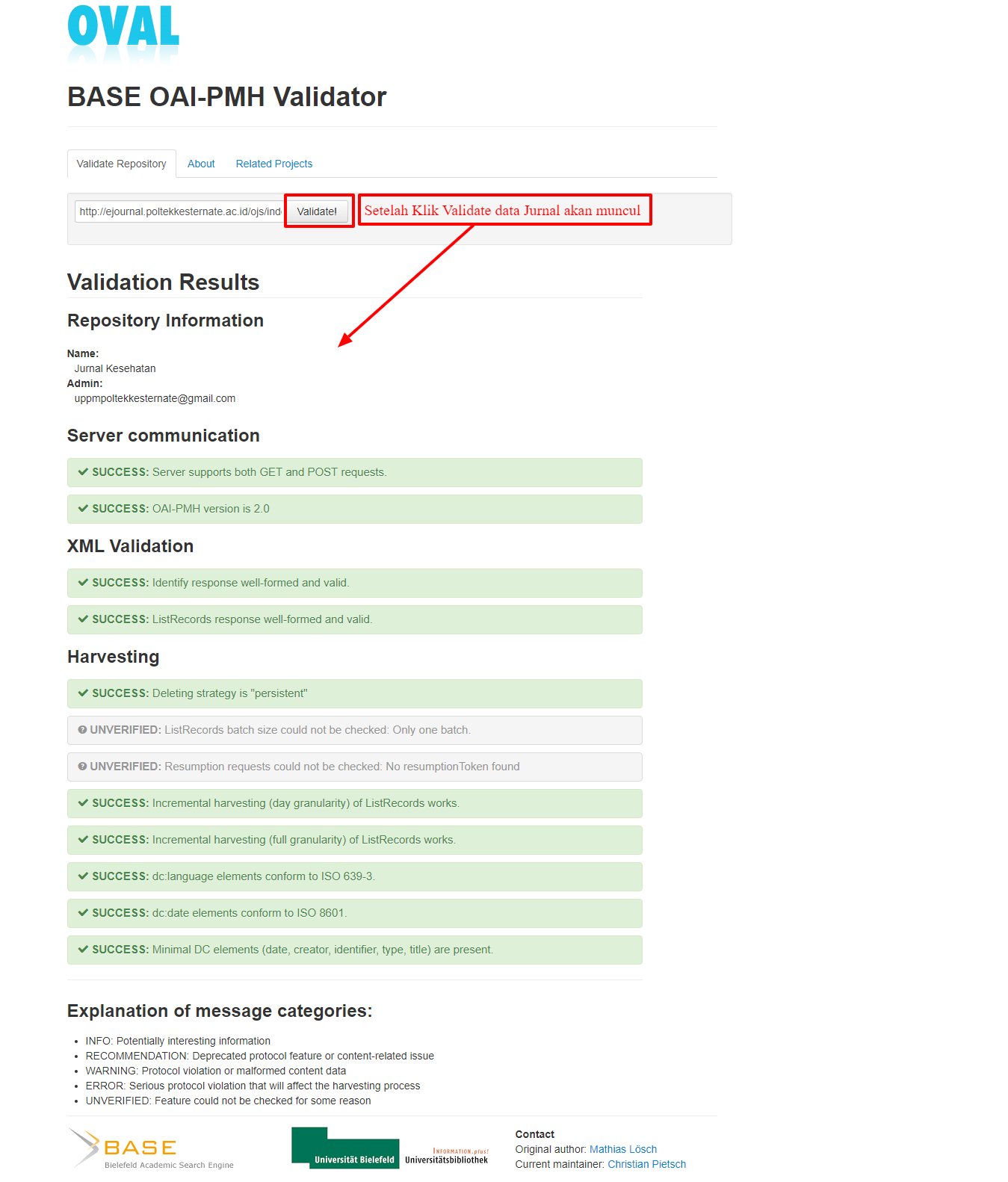 Setelah klik validasi maka akan ada hasil seperti gambar dibawah ini