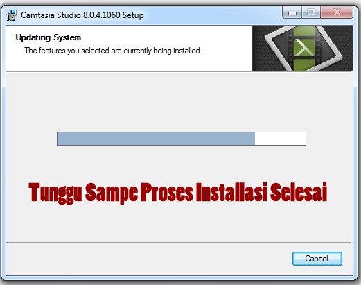 Setelah Klik Next kita tunggu proses instalasi perangkat lunak Camtasia versi 8