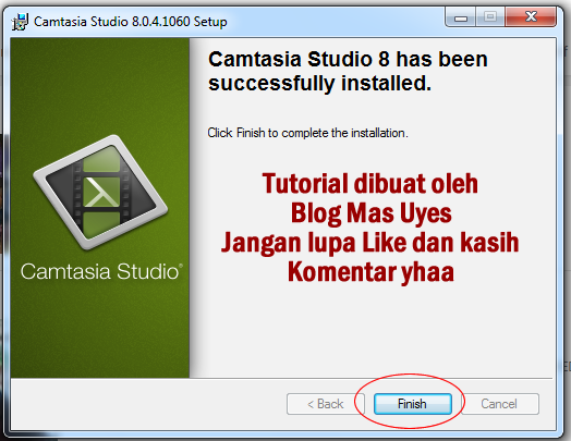 Demikian tutorial pemasangan (installasi) perangkat lunak camtasia versi 8 semoga bermanfaat. Amin